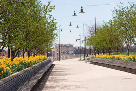 Farther west you’ll find the West Side Highway, an idyllic path along the Hudson River that’s frequented by runners, bikers and walkers.