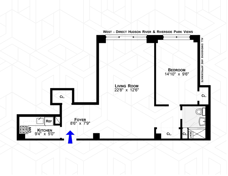 New Price! Like a fine work of art, this full on west facing view of Riverside Park and the Hudson River will mesmerize you by day and by night. It even gets better -this home has been meticulously renovated. Enter through a gracious foyer rarely found in a one bedroom home. A spacious living room awaits and provides plenty of room for lounging and dining along with through wall air conditioning to maximize view, elegant cove lighting and stylish built in storage cabinets. The kitchen offers quartz counter tops, glass backsplash, contemporary white cabinetry, stainless steel appliances and a fun chalkboard wall. Watch sailboats and sunsets from the lovely bedroom. Delight in the beautifully renovated bathroom, which has offers a Toto Washlet toilet, smart linen/toiletry closet, and walk in shower. Four spacious closets have been custom fitted for all your needs. All this is located in the coveted Schwab House, a fully serviced cooperative on the Upper West Side, in one of the most desirable, vibrant, beautiful and historic residential neighborhoods in Manhattan. It is conveniently located around the corner from Fairway, Citarella, Trader Joe's, The Beacon Theater and the 1, 2 & 3 subway lines and just across the street from Riverside Park with its playgrounds, bicycle paths, sports fields, dog runs and restaurants. Enjoy the neighborhood, for in addition to fantastic dining and shopping venues, it is a very short distance to Lincoln Center and multiple cinemas. Schwab House features on-site management and 24 hour: doormen, concierge, handymen and garage, plus a gym, playroom, two luxuriously landscaped roof decks with fantastic views, two central laundry rooms, bike room, lending library and an air conditioned modern lobby. Pied-a-terre friendly, accessible and pets are permitted. A capital assessment of $277.50 per month begins on April 1, 2021 for 36 months to replenish reserve account and fund capital projects for 2021-2026. Open houses are not permitted; however, this terrific home is easily shown by appointment.
